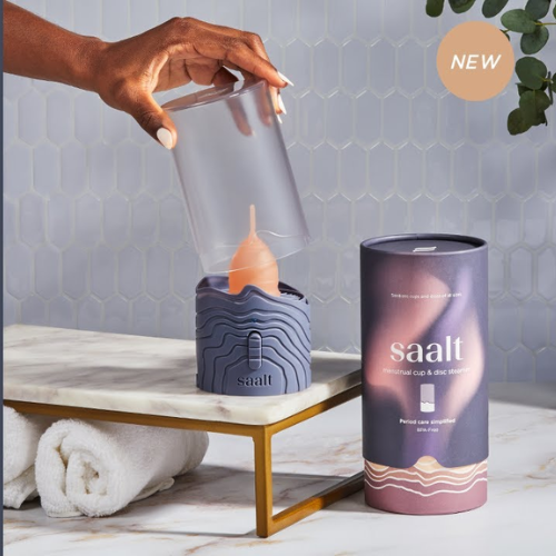 Between cycles, sterilize the cup by boiling it in water for five minutes or use a steam-based sanitizer. Saalt also offers portable sanitizing solutions that can be used when traveling or on the go. For in-between cleanups, especially during busy days, biodegradable wipes made for cup care offer a quick solution.