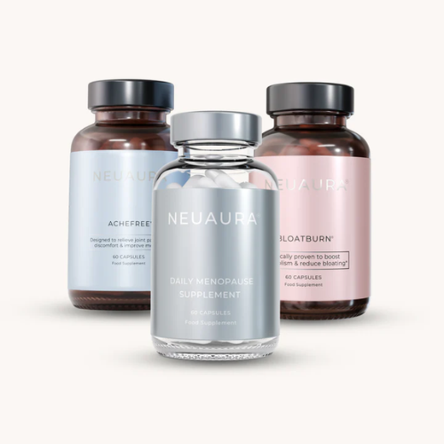 Rather than offering another single supplement claiming to fix everything, Neuaura delivers a three-in-one system: the Daily Menopause Supplement, Ache-Free, and BloatBurn. Each one is designed to work in tandem, addressing common menopausal symptoms from different angles.