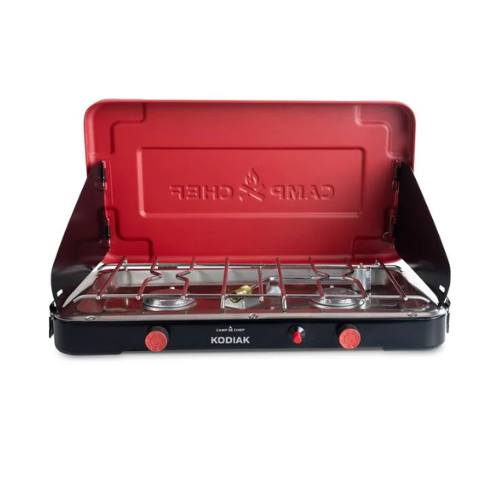 Small doesn’t mean soft when it comes to the Kodiak camping stove. Designed for those who want strength without bulk, this compact stove delivers a total of 20,000 BTUs from two burners, more heat than many indoor ranges. It’s ideal for minimalist packers who still crave the performance of a full camp chef grill on the go.