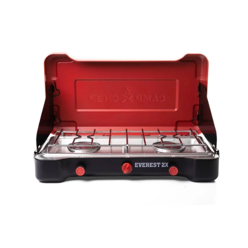 Meet the Everest 2X, a top-tier pick from the Mountain Series built for high-volume cooking in unpredictable conditions. With dual 20,000 BTU burners and 215 square inches of cook space, this camp chef stove has enough room and firepower for serious outdoor meals. And the reviews speak for themselves. From being named “Best 2-Burner Stove” by Outdoorlife to “Best Overall Camping Stove” by both Gearjunkie and Gearlabs, this model has consistently earned its reputation.